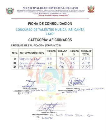 Comunicados Resultados del concurso de desfile cívico intercomunidades por el 155 Aniversario del Distrito de Layo 27 de octubre de 2023 8:22 pm